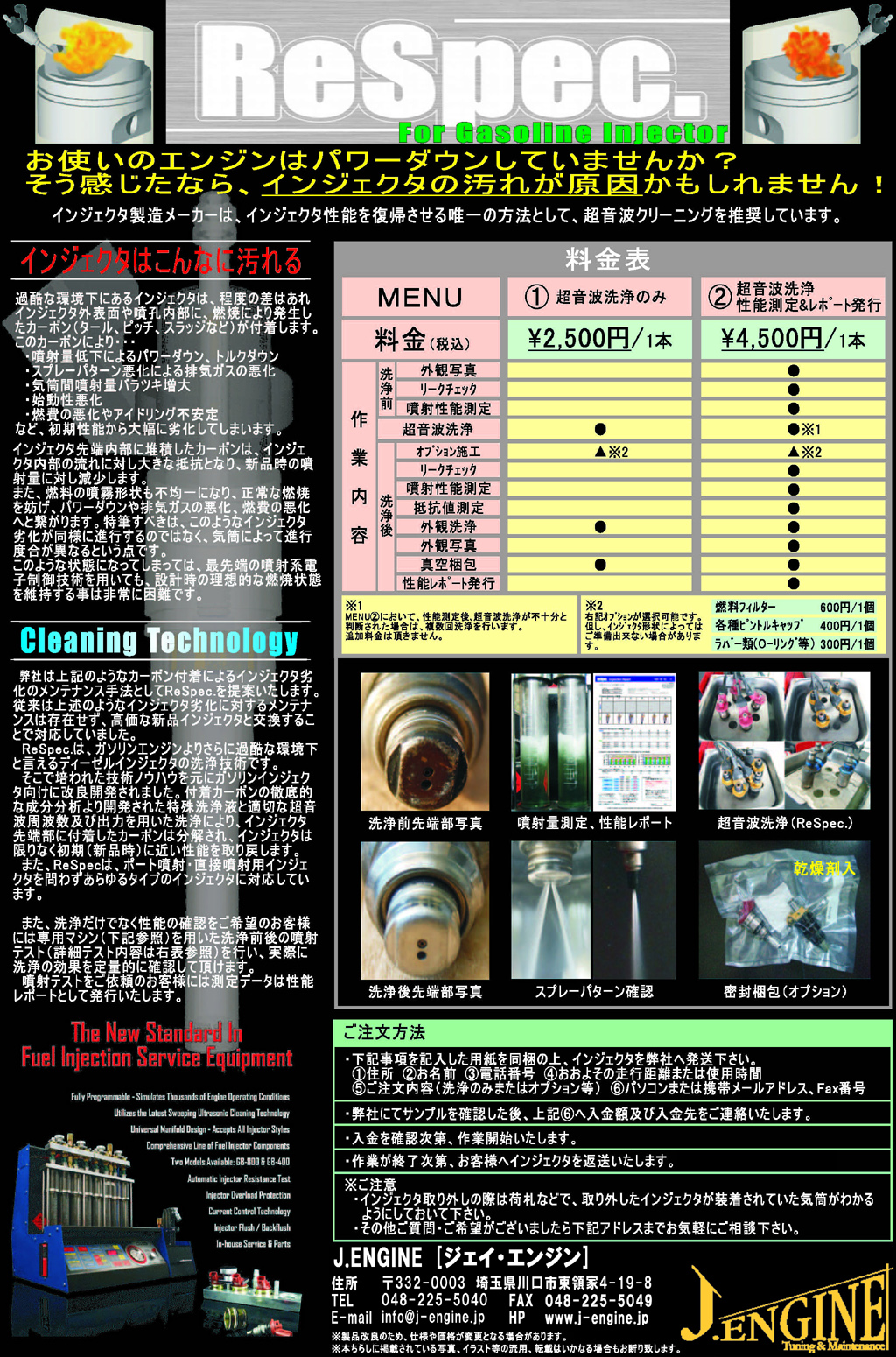 インジェクターはガソリンを噴射するものですが、使用しているとカーボン等でかなり汚れてきて本来の噴射量が得られなくなったり、噴射が悪くなったりと、他のどこをチューニングしてもインジェクターが本来の噴射をしなければ、それ以上の高性能は得られません。 また、各シリンダーに偏りがあっても性能低下になります。 ノーマル車でもアイドリング安定、燃費向上、トルクアップ、アクセルレスポンス向上&スムーズ、エンジンが静かになる等かなりの改善が見られます。 そこで特殊な洗浄剤を使い、超音波で洗浄するシステムです。 また、性能測定レポートは、施工前後が数値で見られますので、不良箇所の特定や改善の程度を見ることができ大変便利です。